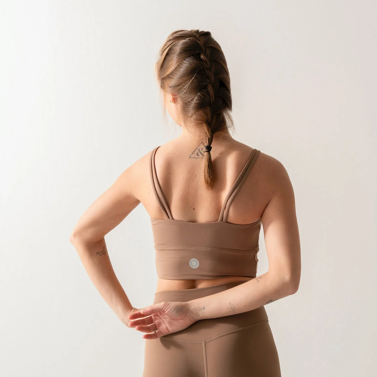 Bewegen Sie sich mit Selbstvertrauen und Leichtigkeit im Aura Bra, der sorgfältig dafür entwickelt wurde, Sie beim Yoga, Pilates und sogar bei Aktivitäten mittlerer bis hoher Intensität zu unterstützen. Mit seinem minimalistischen Design bietet dieser Yoga-BH die perfekte Balance zwischen Komfort und Eleganz.