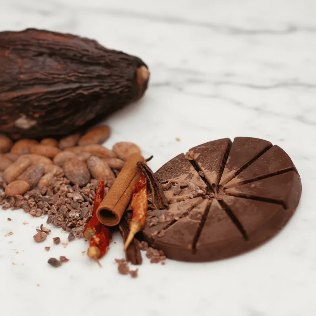 A single-origin ceremonial cacao blend, ethically and organically sourced. Made with heirloom Criollo cacao and enriched with traditional Mayan spices, including cayenne pepper, cinnamon, and vanilla. Tasting notes: Spicy · Rich · Earthy