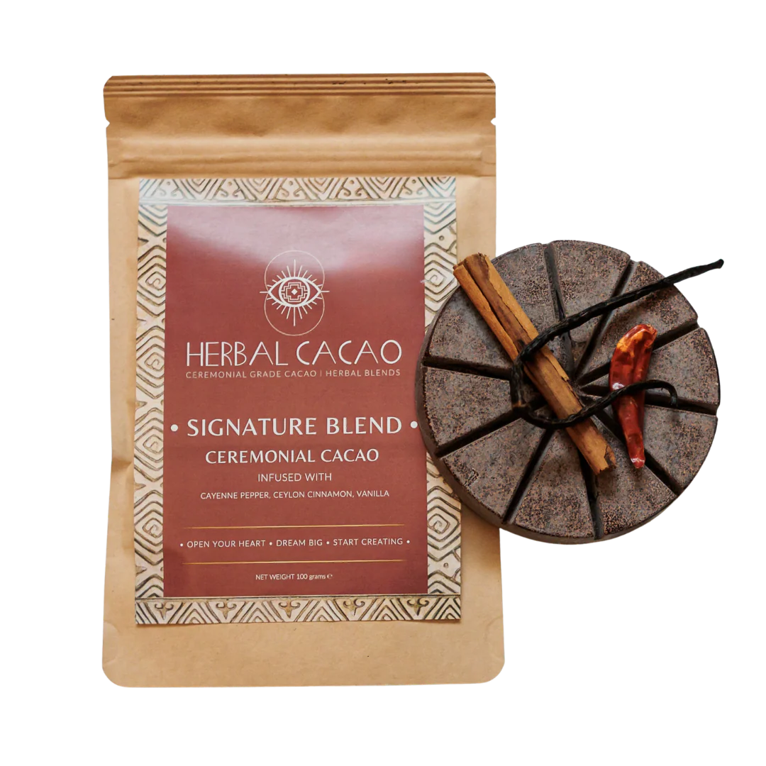 Signature Blend is a traditional ceremonial cacao blend, created for ritual use and mindful moments. This blend honors the cacao and spices, as they have been used and consumed by the Maya people for generations.
