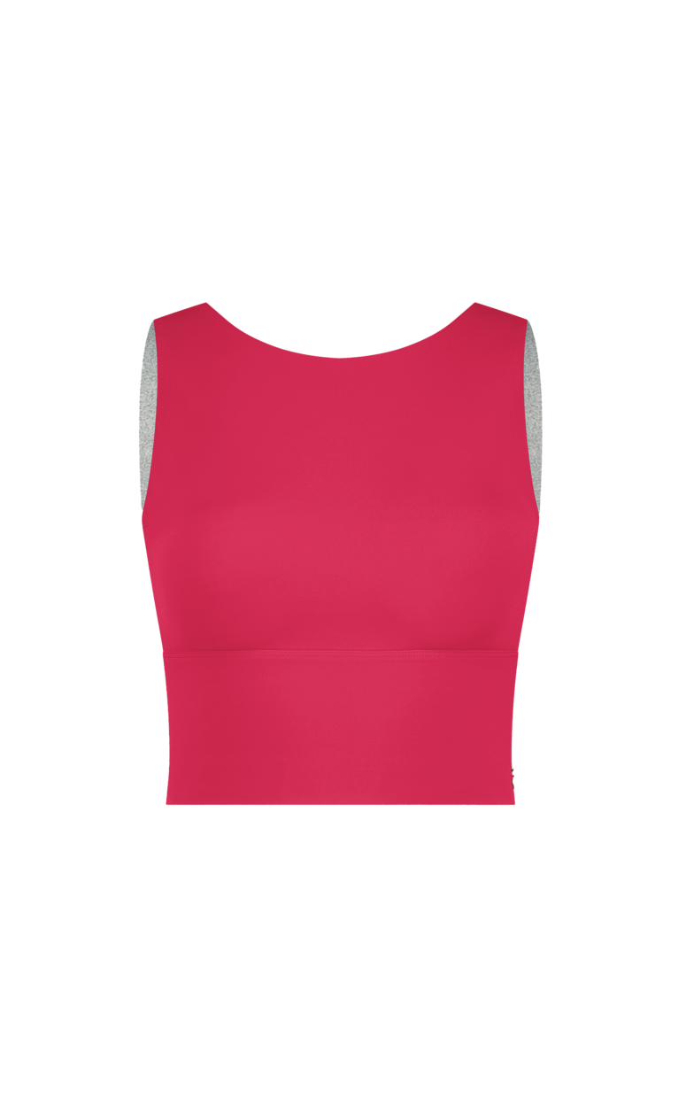 The Cross Crop Top is one of our bestsellers. This yoga top offers a lot of support and has a nice high neckline so you don't have a view when bending over. The wide shoulder straps and soft band on the ribs feel comfortable. With the removable pads.