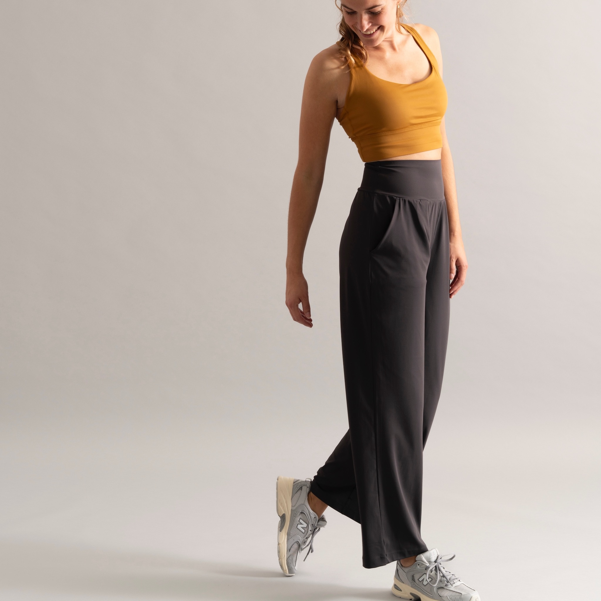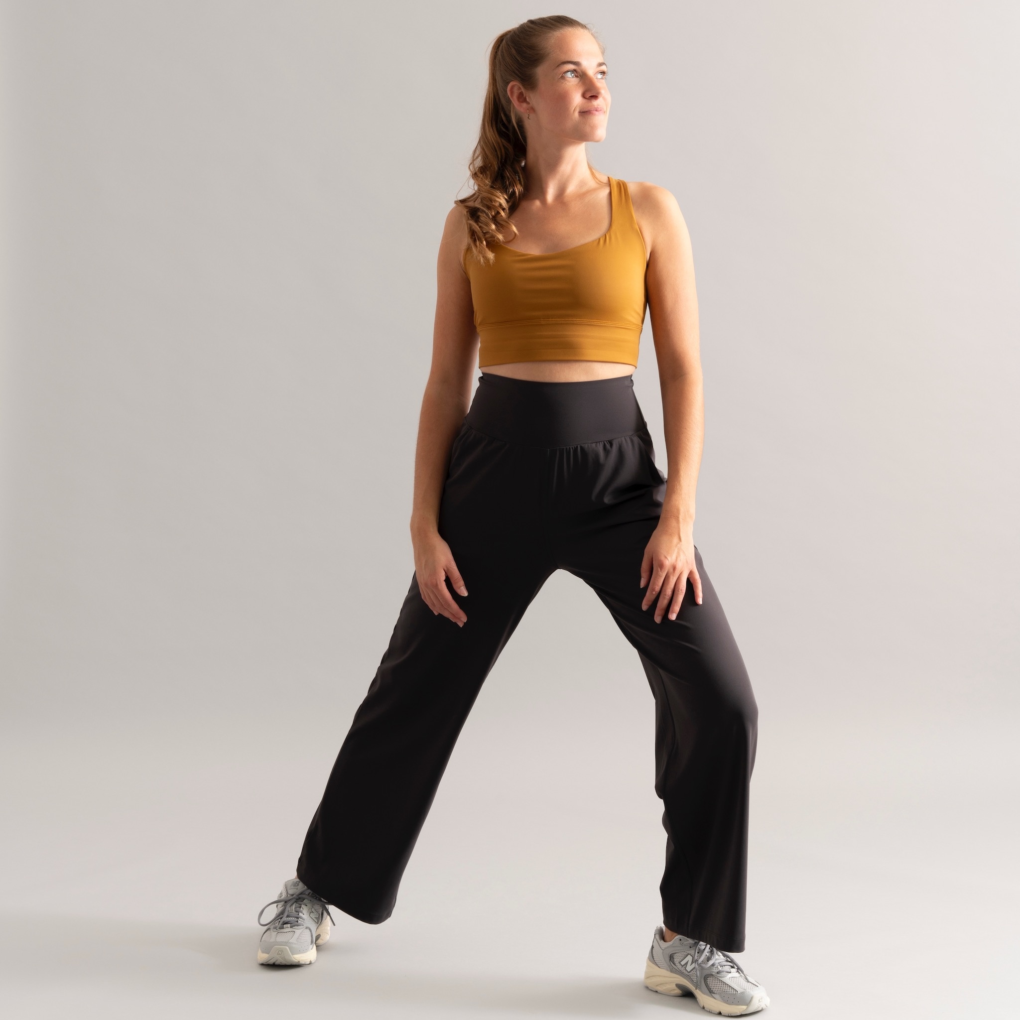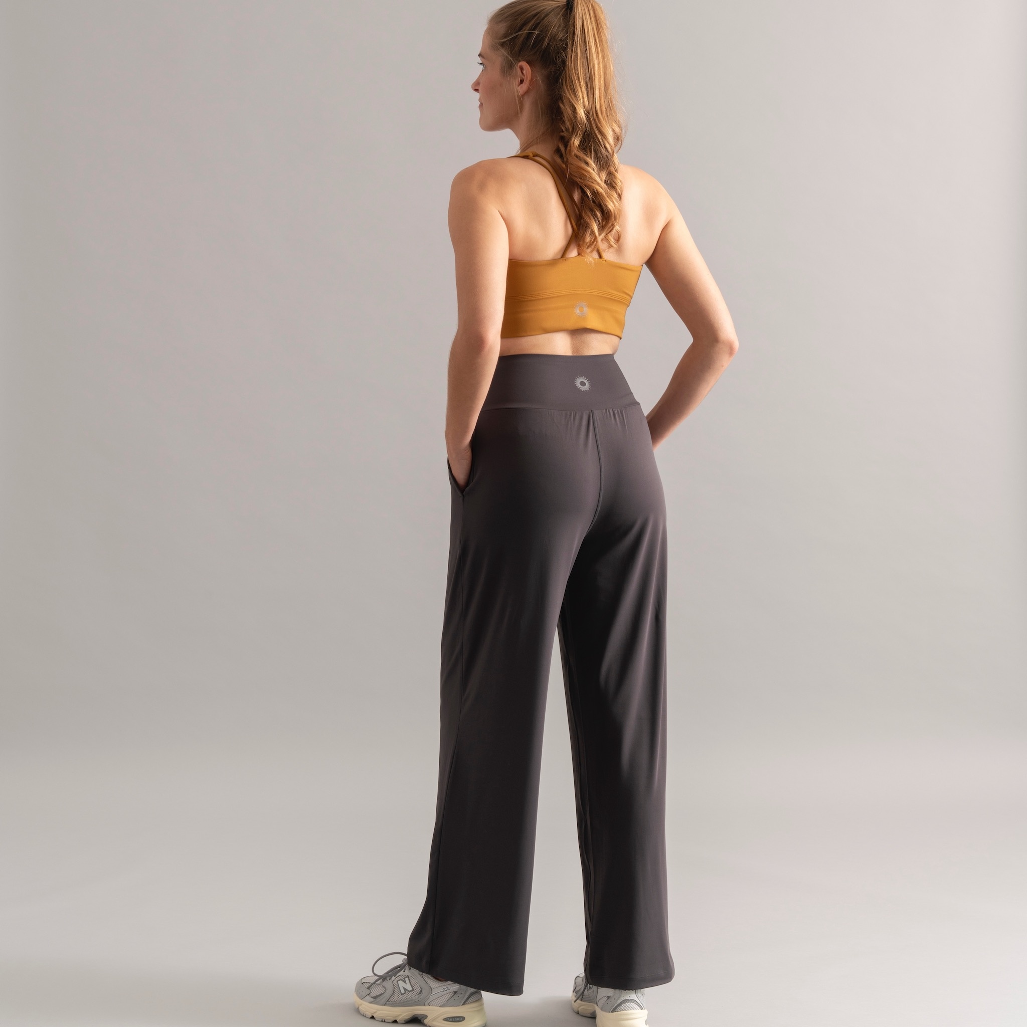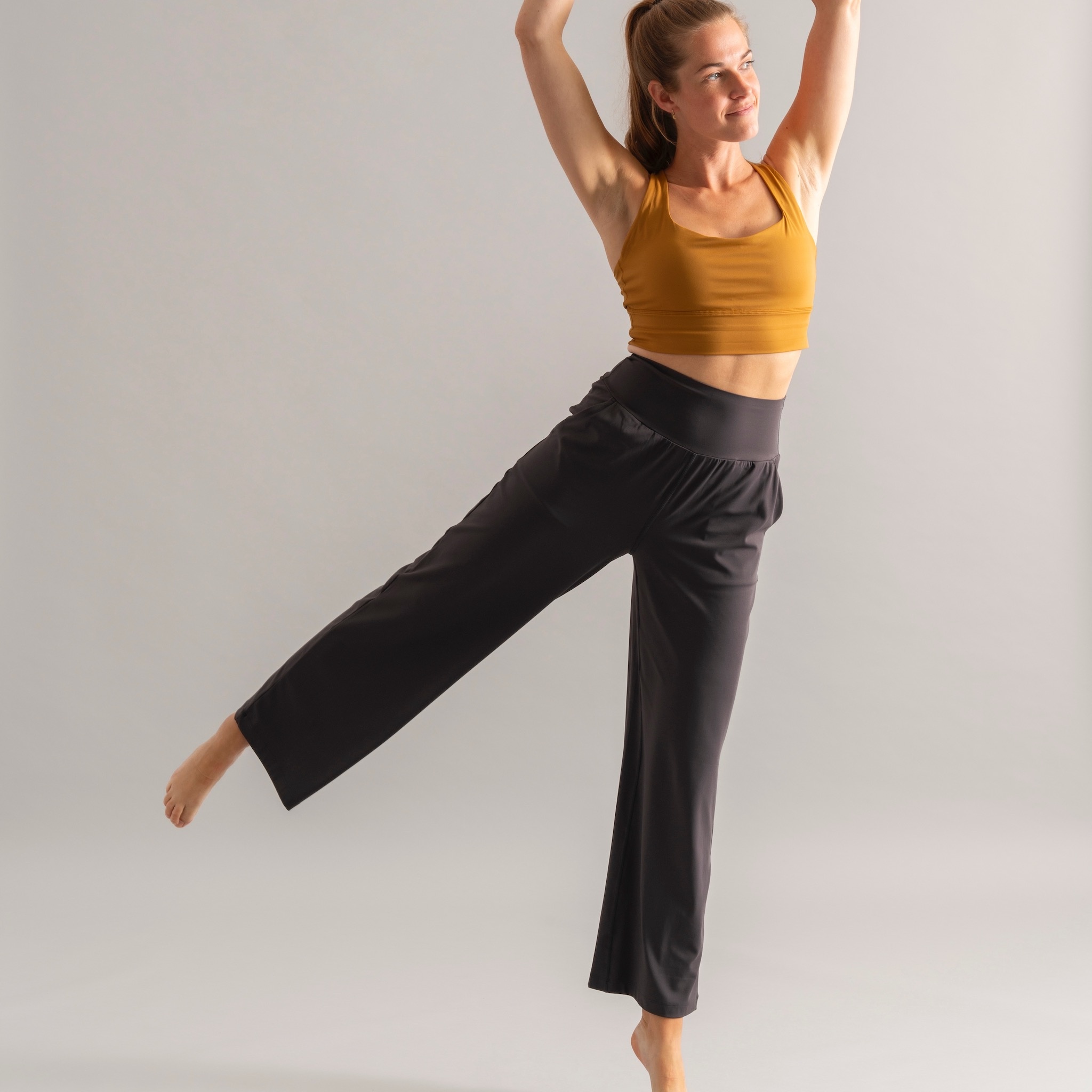 These wonderfully wide yoga pants from Spica are made of a super soft fabric that falls beautifully around your legs. Wonderful for quiet forms of yoga, meditation or lounging at home. The pants have two pockets and an extra high waistband.
