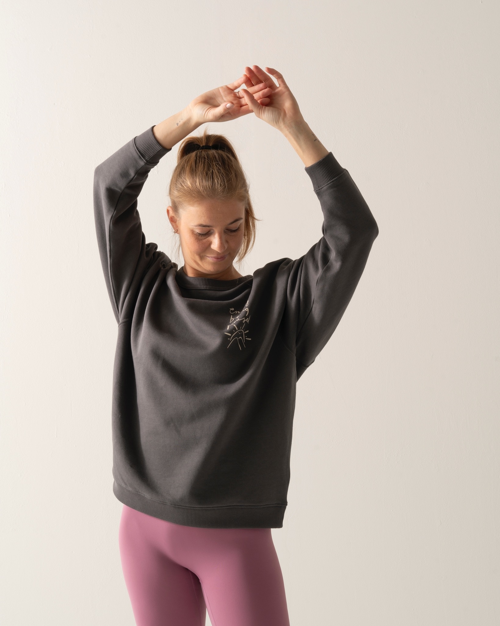 This luxurious oversized sweater from Spica is ideal to keep you warm before and after class. Made of super soft material that feels wonderful on the skin. With a unique design specially designed for this yoga sweater: Enjoy Being Paused.