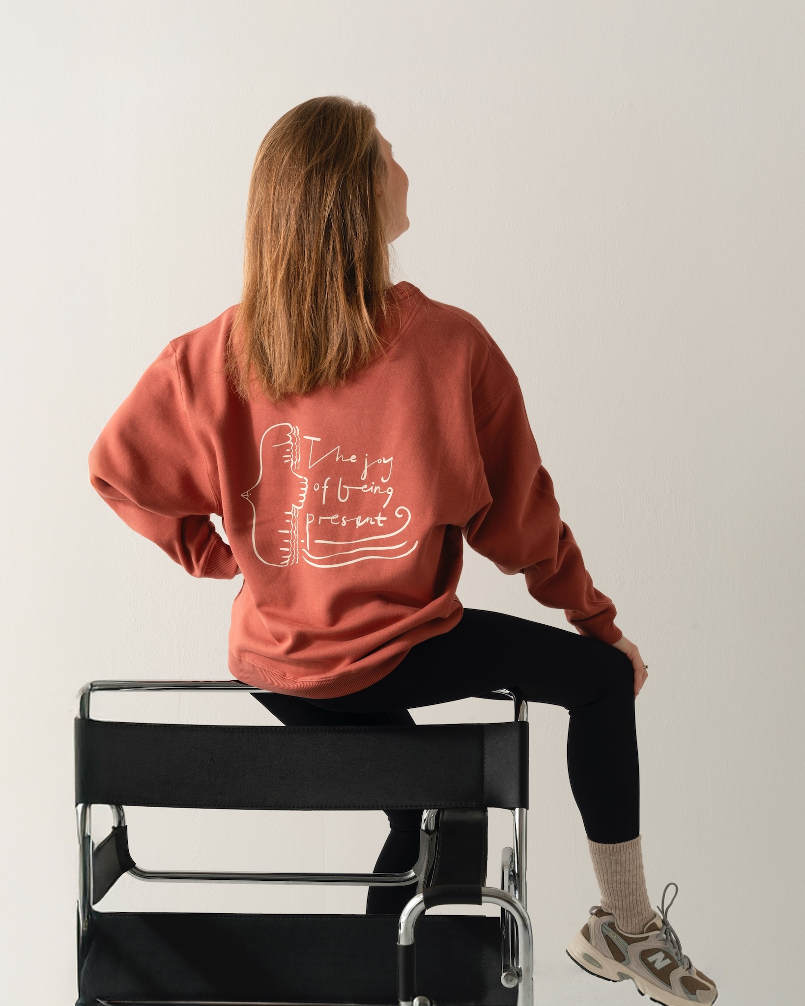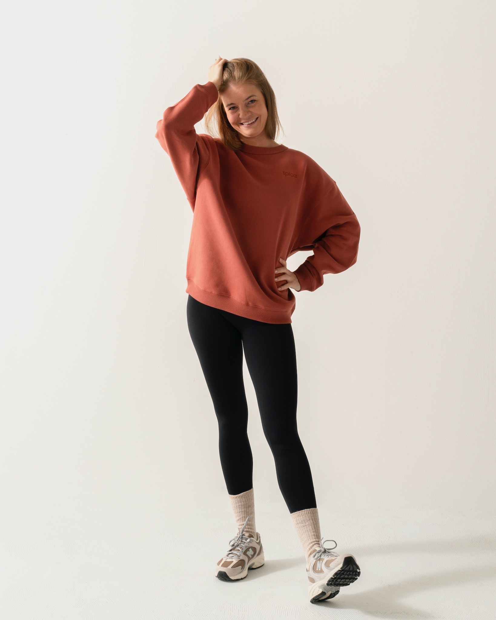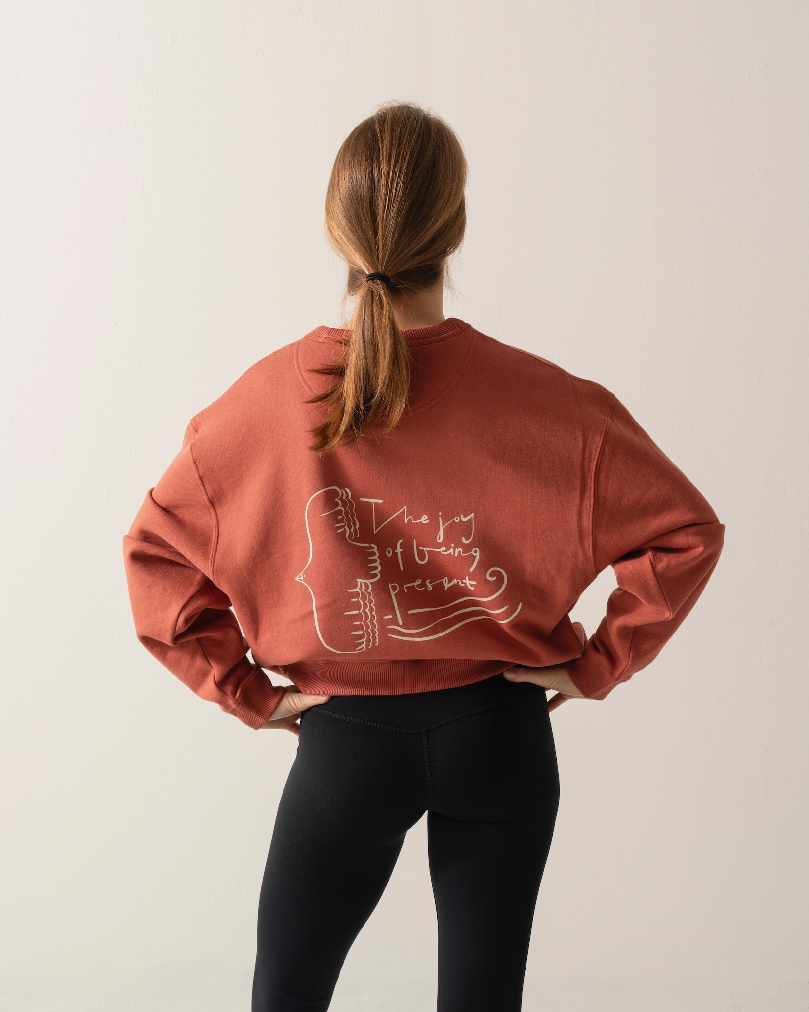 This luxurious oversized sweater from Spica is ideal to keep you warm before and after class. Made of super soft material that feels wonderful on the skin. With a unique design specially designed for this yoga sweater: The Joy Of Being Present.