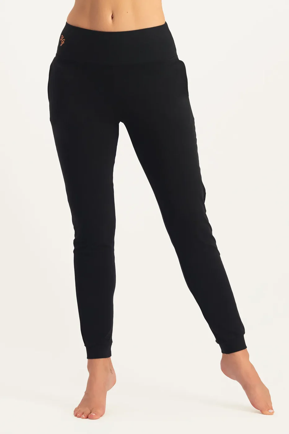 Our Oba organic yoga pants are the ultimate feel-good pants. They're so comfortable you'll barely notice you're wearing them, allowing you to fully focus on your yoga practice. These pants have a single elastic waistband, small cuffs, and a slightly dropped crotch.