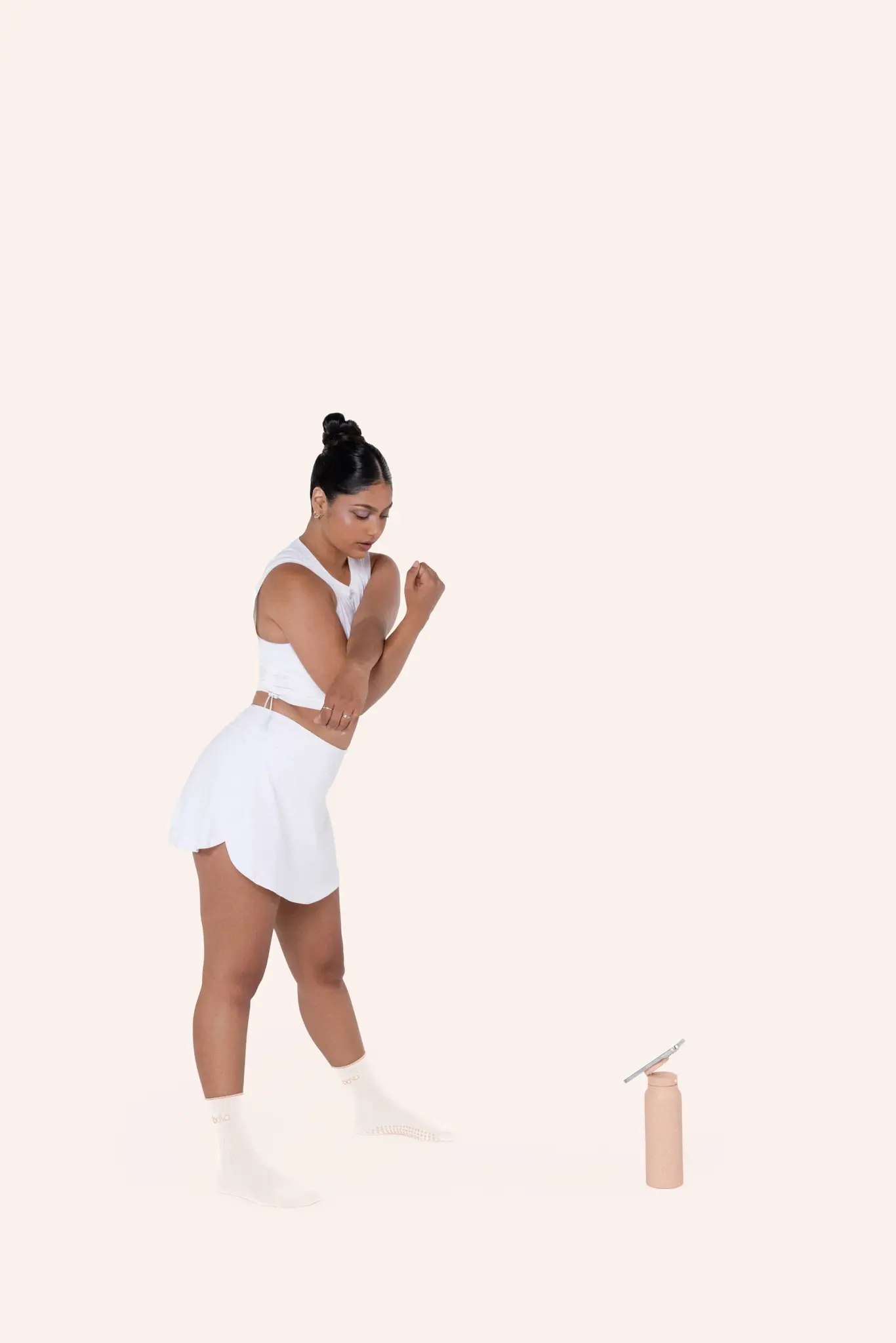 De 710 ml (24oz) Bala-fles, ontwikkeld in samenwerking met Ringo, is zowel fantastisch als functioneel. Dankzij de geïntegreerde magnetische telefoonhouder verandert hij moeiteloos in een statief.