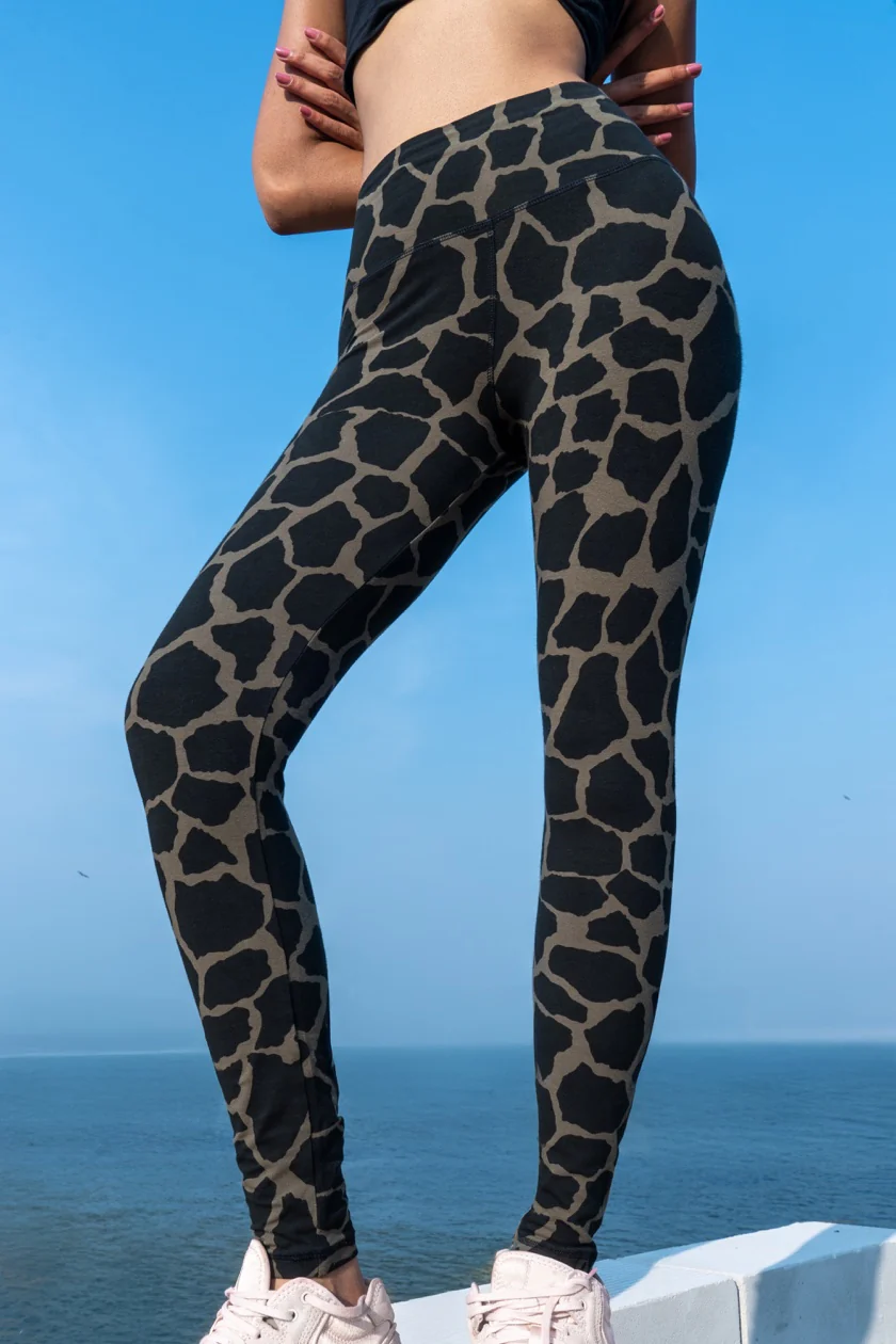 Funky Simplicity Funky Simplicity Legging 'Normal Leg' - Olive/Black Giraffe